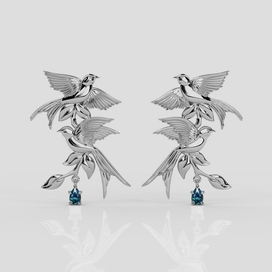 Wonderland 'Bird Song' Diamond or Teal Sapphire Stud Earrings in Yellow Gold or Platinum