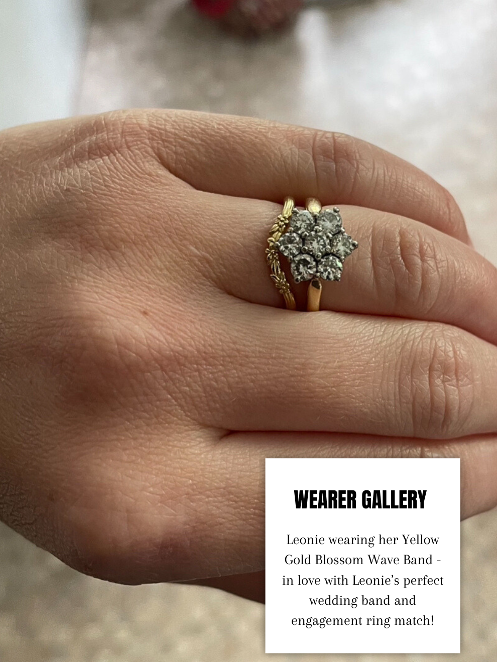 I bought my wedding ring from Georgina and it was perfect! I had been looking for a design to work around my engagement ring and when I saw the blossom ring in Georgina’s collection I fell in love. When it arrived, it was as if it was made bespoke for my engagement ring! I absolutely love my ring and cannot wait for our wedding day so I can wear it every day 🧡 Thank you so much!