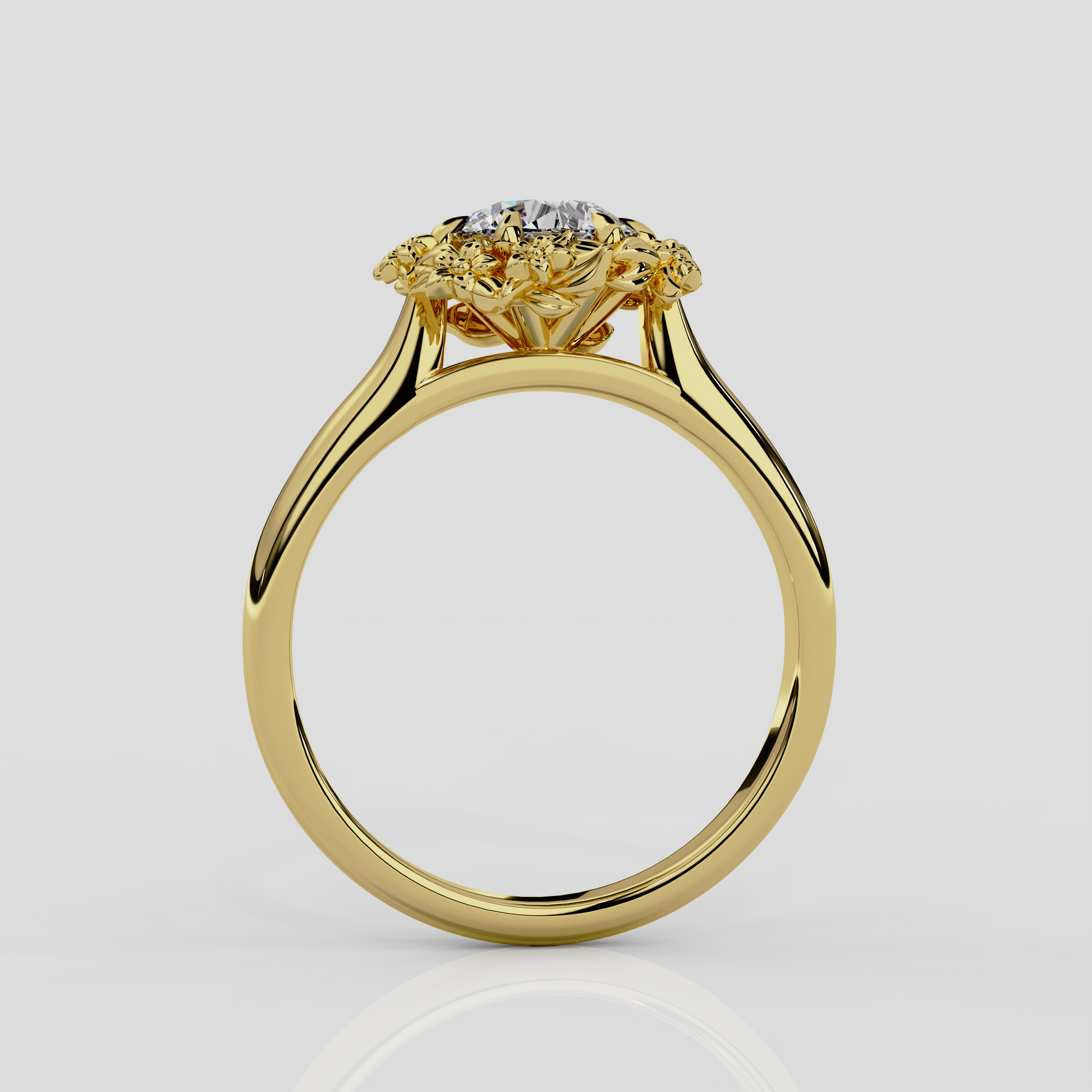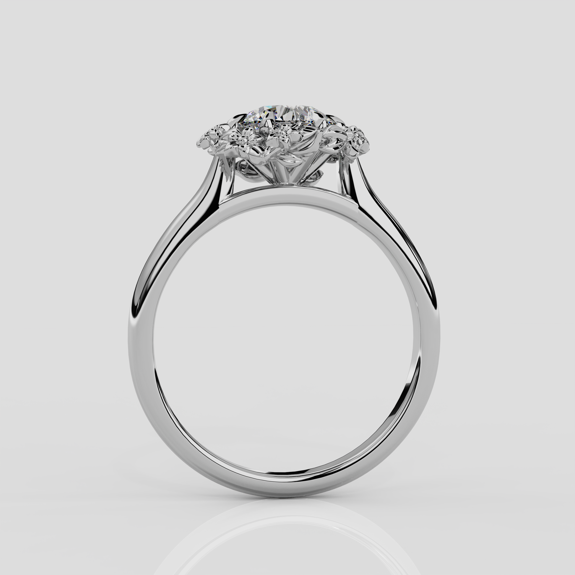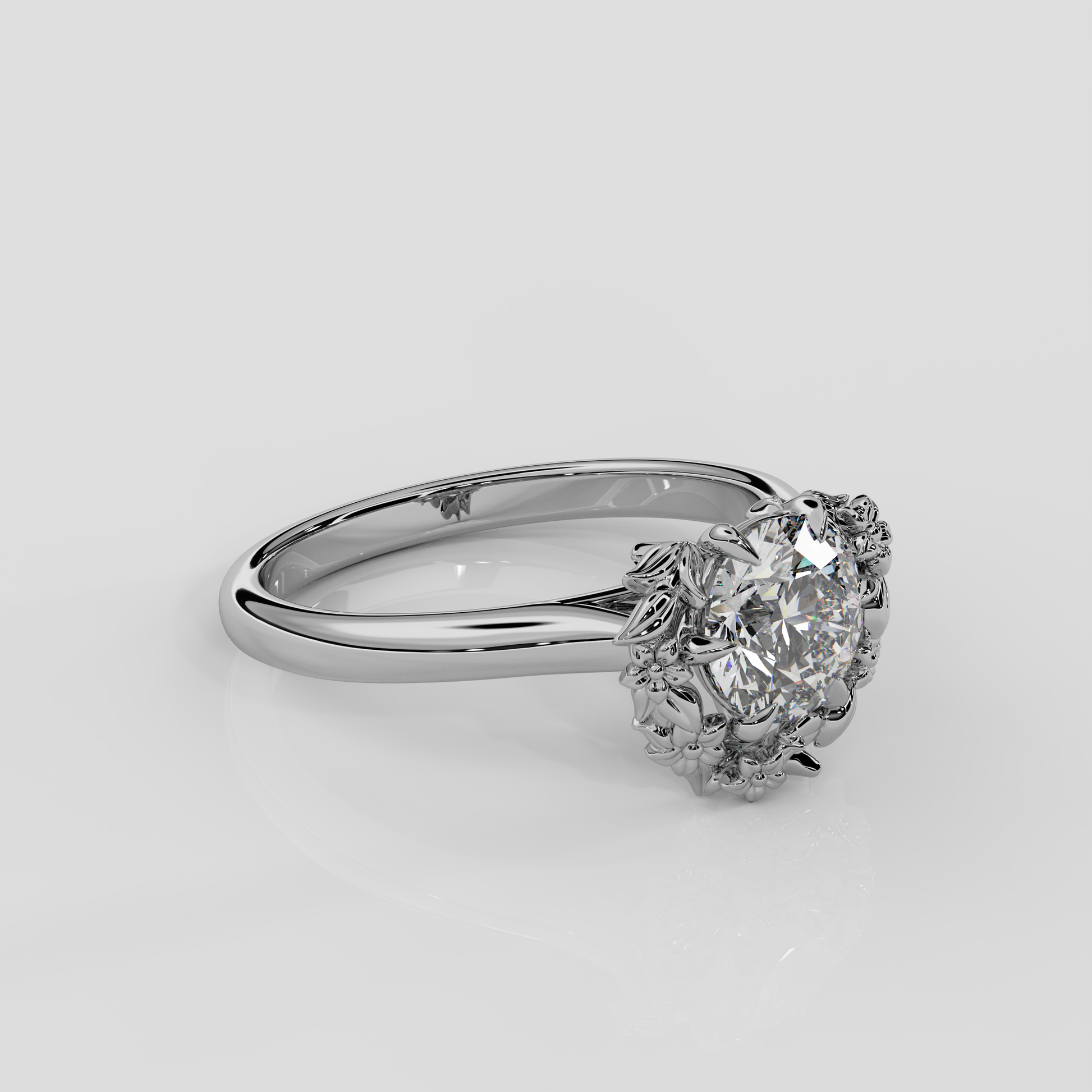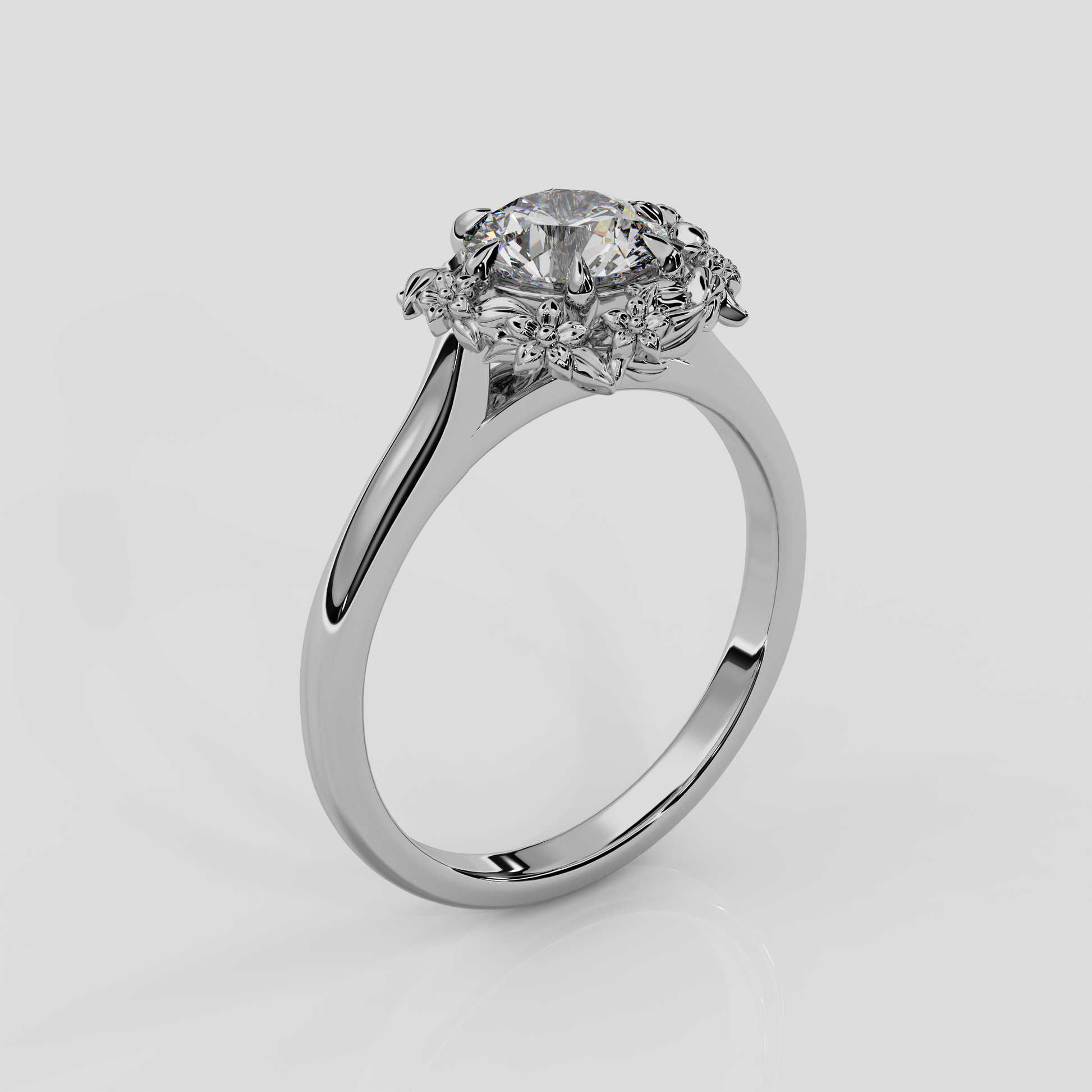 Platinum or 18ct yellow gold floral engagement ring, with a half halo twisting around a beautiful round natural or lab grown diamond.