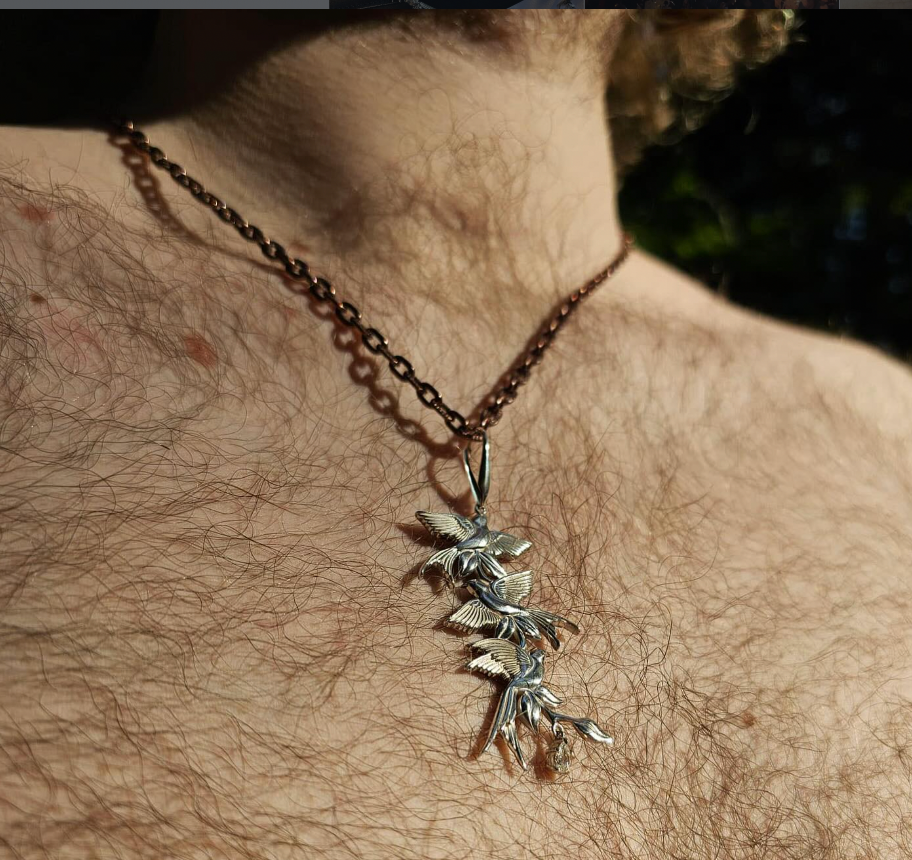 "Inspired by our signature Bird Song Earrings, I created this three-tier necklace as a sculptural alternative for those drawn to statement jewellery as wearable art. Each piece is crafted in solid sterling silver, with cascading birds designed to move and catch the light beautifully when worn.