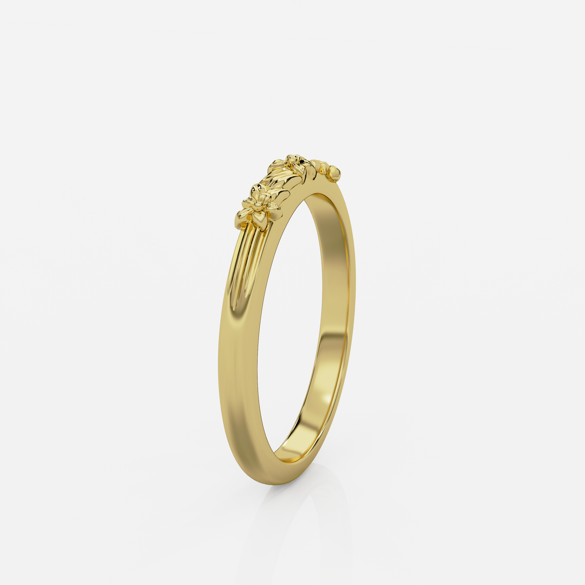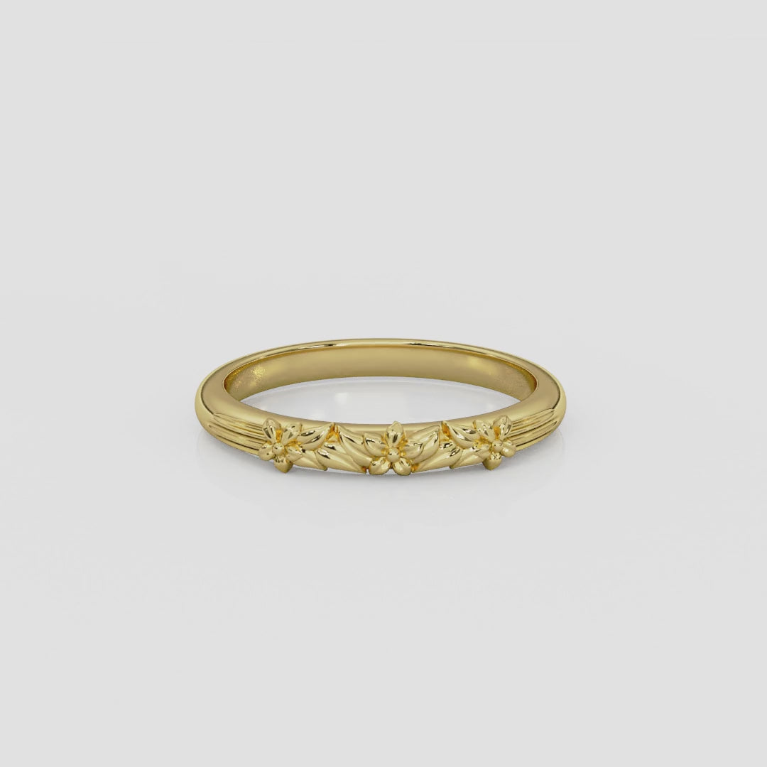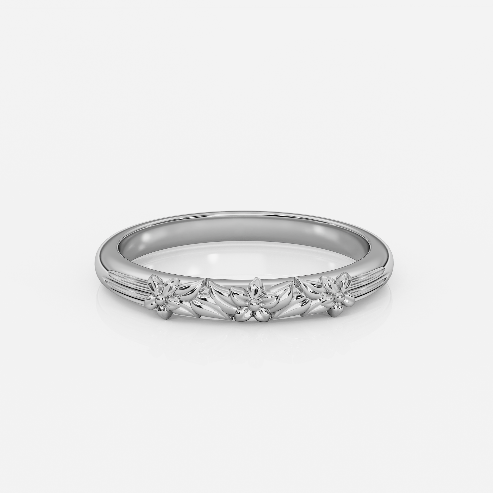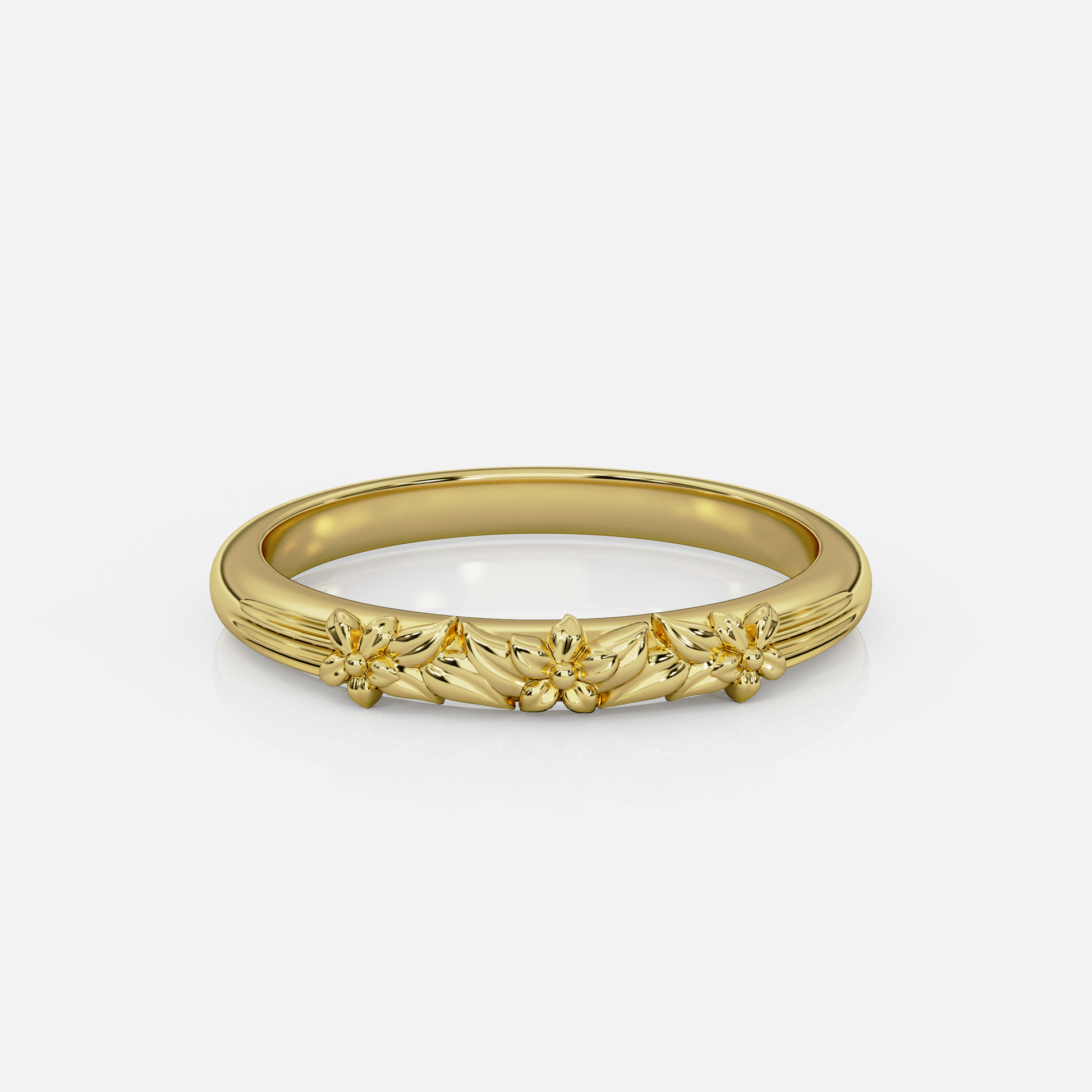 A blend of floral motifs and elegance, Georgina Yvonne’s ‘Blossom’ Band is the ultimate forever ring. Available in 18ct yellow gold or platinum, made to order to your ring size, with complimentary inside engraving available.