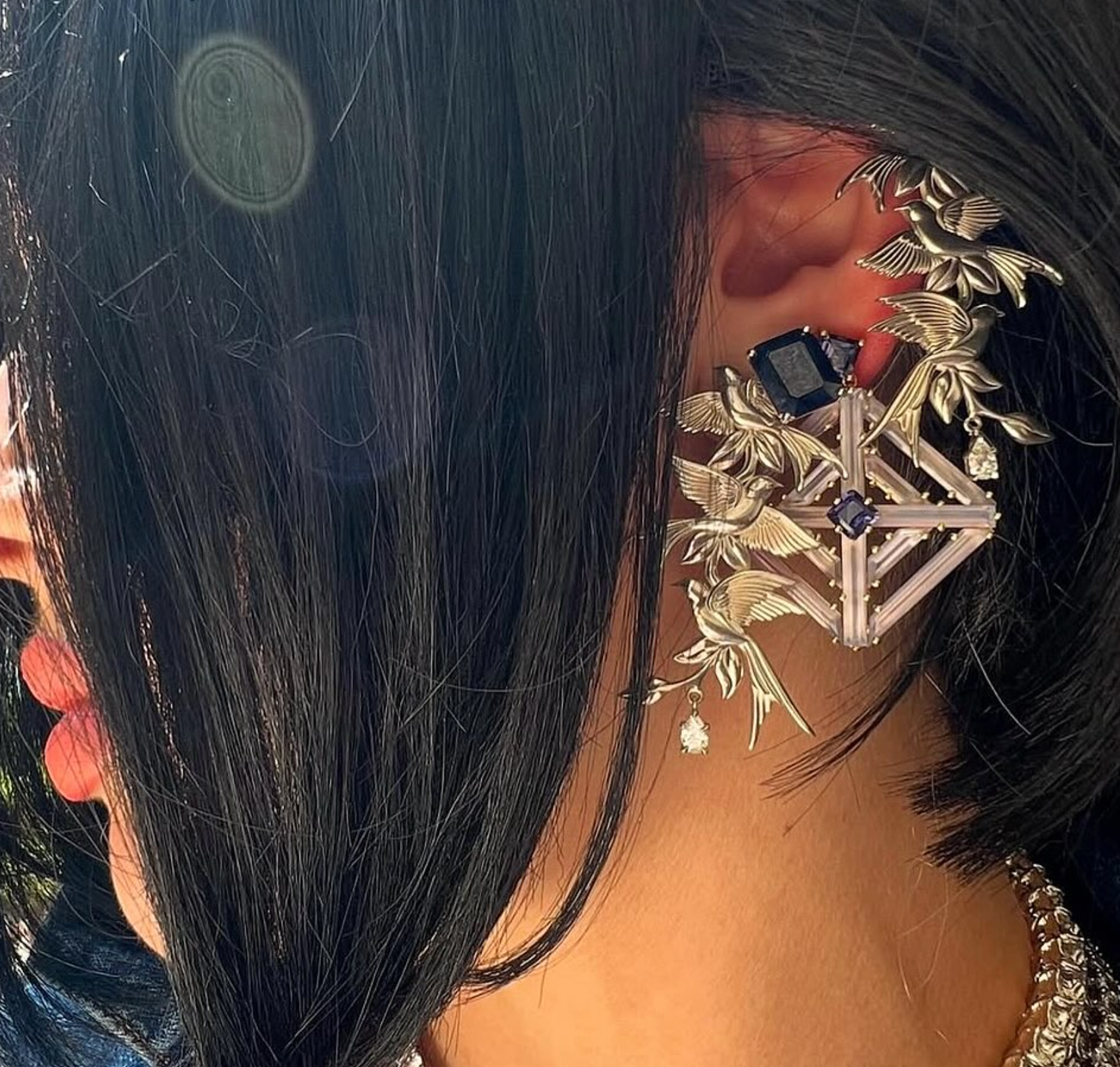 18ct yellow gold or platinum 'Bird Song' Stud Earrings from Georgina Yvonne's 'Wonderland' Collection.